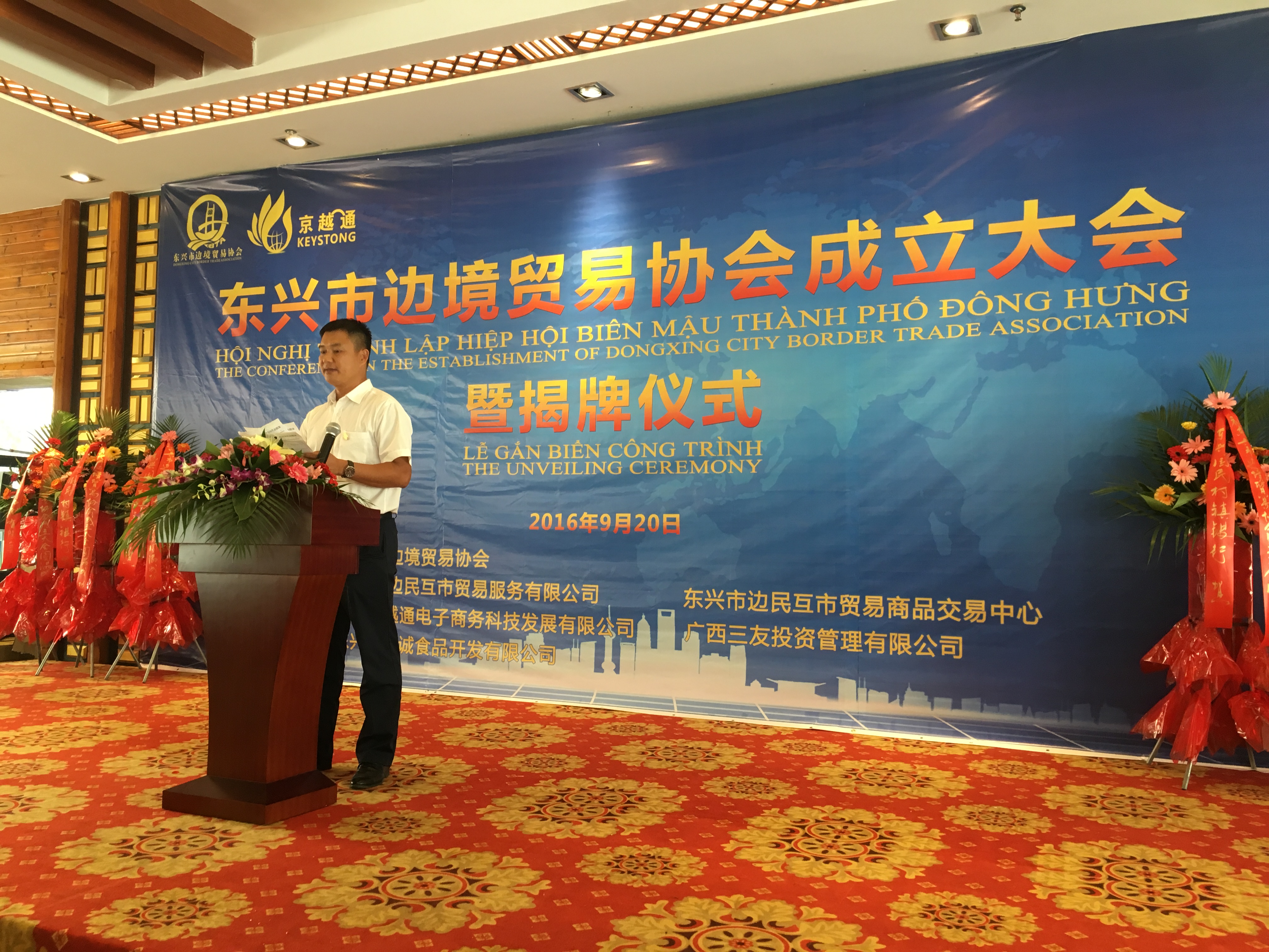 在各界熱心人士的共同籌備下,東興邊境貿(mào)易協(xié)會(huì)于920日正式成立并在東興市北投國(guó)際旅游集散中心隆重舉行成立及揭牌儀式。東興市人民政府,包括怡誠(chéng)食品公司在內(nèi)的東興市各會(huì)員企業(yè),事業(yè)單位,金融及商務(wù)服務(wù)機(jī)構(gòu)應(yīng)邀出席了協(xié)會(huì)的成立儀式。席間東興市委領(lǐng)導(dǎo)作出了重要指示,各企業(yè)代表,會(huì)員單位亦先后發(fā)表了講話,熱烈祝賀協(xié)會(huì)成立,同時(shí)寄愿協(xié)會(huì)職能逐步穩(wěn)固,早日為當(dāng)?shù)亟?jīng)濟(jì)發(fā)展作出貢獻(xiàn)。