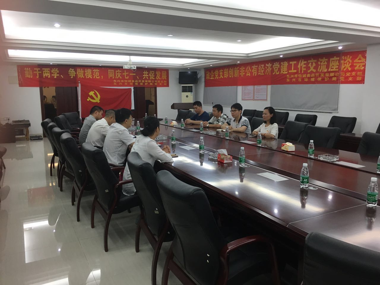 6月30日,在中國共產(chǎn)黨96周年誕辰到臨之際,怡誠食品公司黨支部全體成員先后與東興市海關(guān)稽查科、風(fēng)險科兩黨支部以及東興市環(huán)保局黨支部開展政企黨務(wù)工作交流活動。活動就非公有制經(jīng)濟(jì)企業(yè)內(nèi)黨務(wù)工進(jìn)推進(jìn)的方式和內(nèi)容作出全面的展示,同時針對企業(yè)管理和發(fā)展當(dāng)中與相應(yīng)部門管轄范圍內(nèi)的實(shí)際工作事務(wù)進(jìn)行了更深入的溝通,使得活動各方均能以切切實(shí)實(shí)的職務(wù)實(shí)踐成果為黨的周年紀(jì)念日獻(xiàn)上一份屬于自己的禮物,意義非凡。
