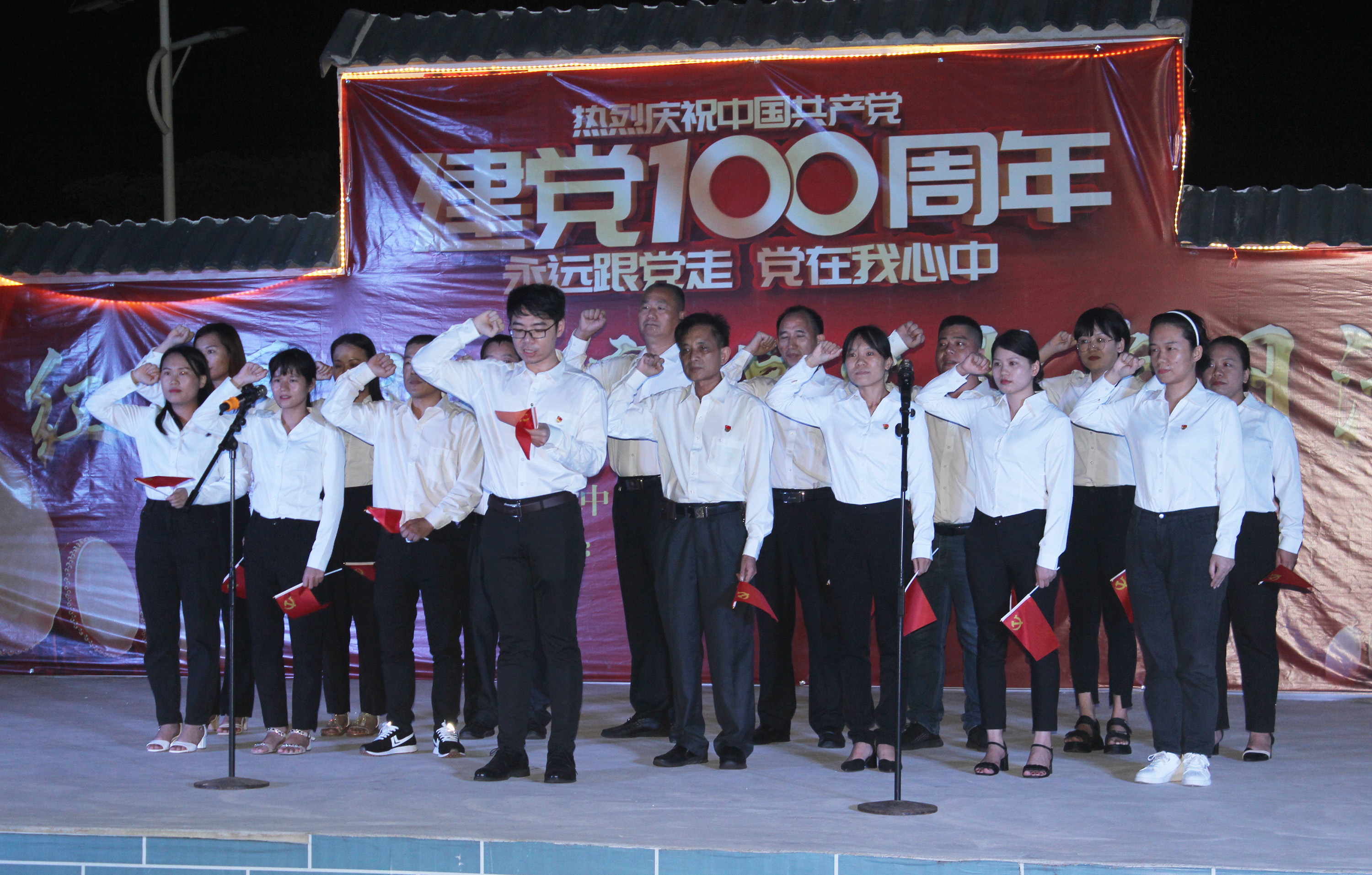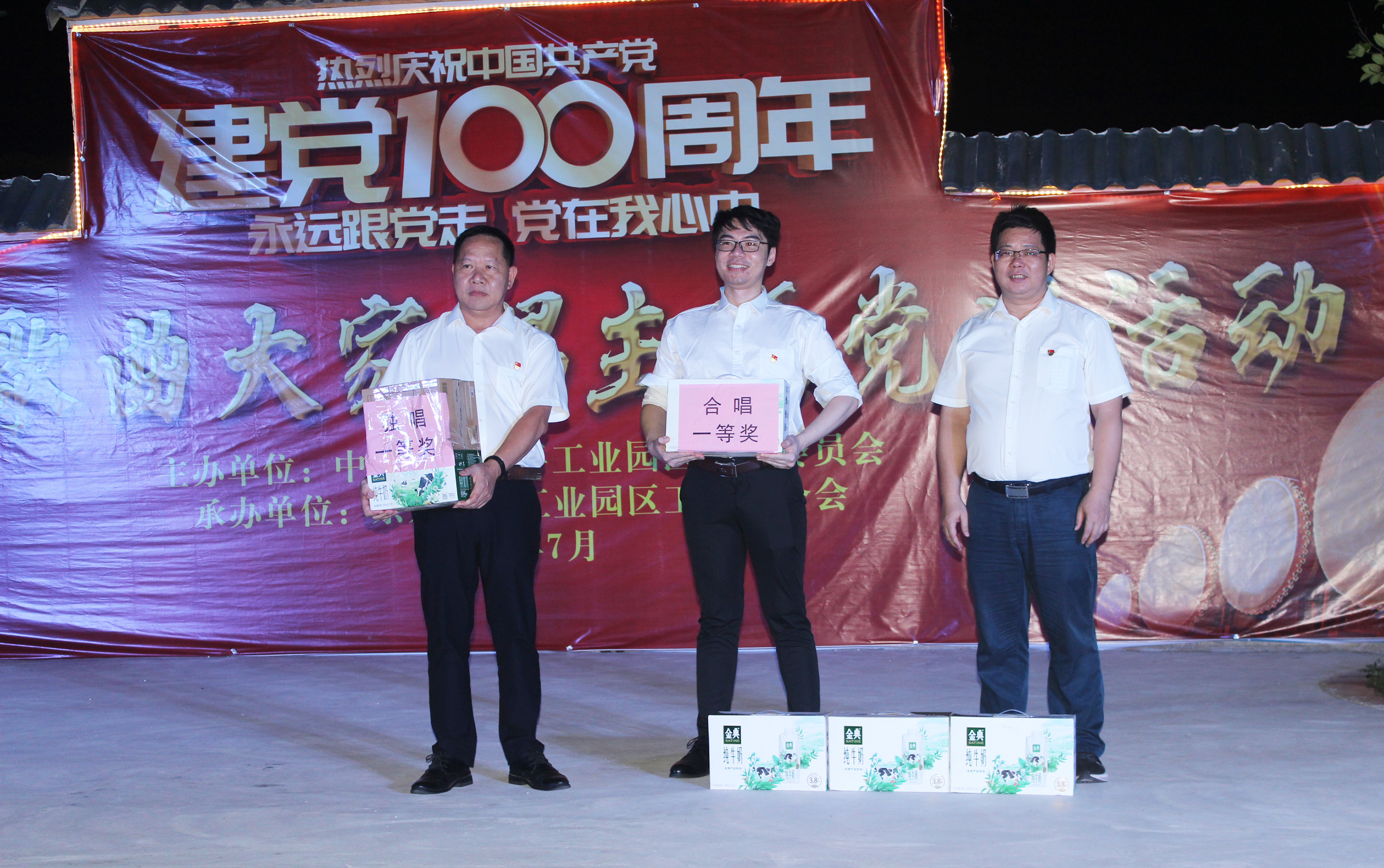 “黨在我心中,永遠(yuǎn)跟黨走”,緊扣著主題,江平工業(yè)園各非公黨支部踴躍派出代表到臺上進(jìn)行紅歌獻(xiàn)唱?!队成郊t》、《長江之歌》、《唱支山歌給黨聽》、《不忘初心》、《走進(jìn)新時代》等傳統(tǒng)革命歌曲,著名紅歌跌宕旋律飄揚(yáng)在夜空。期后怡誠食品黨支部全體黨員、入黨積極分子在支部書記帶領(lǐng)下,重溫入黨誓詞,牢記為共產(chǎn)主義事業(yè)奮斗終身的歷史使命,用拳拳赤子初心,獻(xiàn)唱《沒有共產(chǎn)黨,就沒有新中國》一曲,得到了在場各支部黨員同志高度肯定,并榮獲紅歌合唱一等獎。