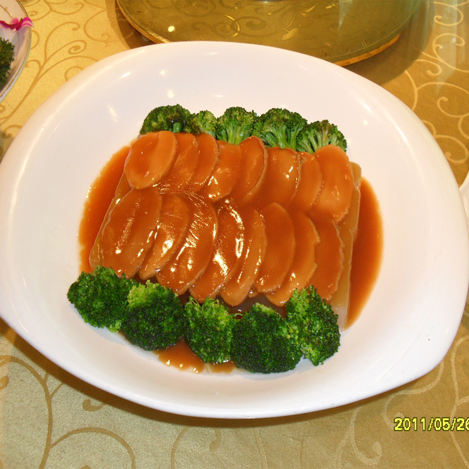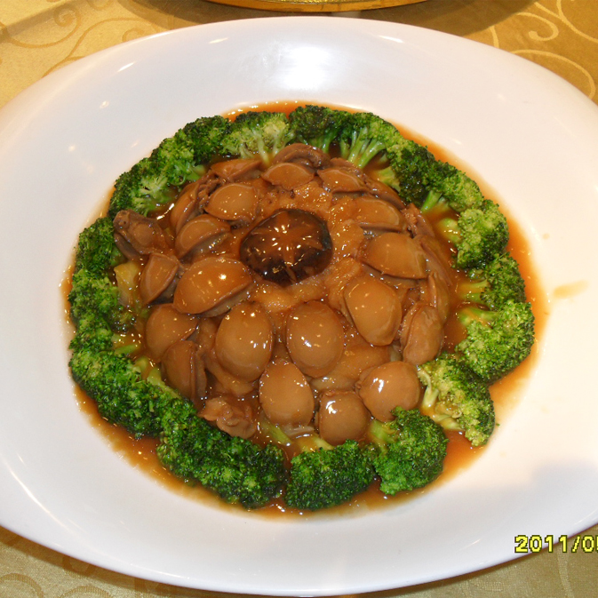 配料:怡祥牌燒汁網(wǎng)鮑罐頭、大白菜、西蘭花