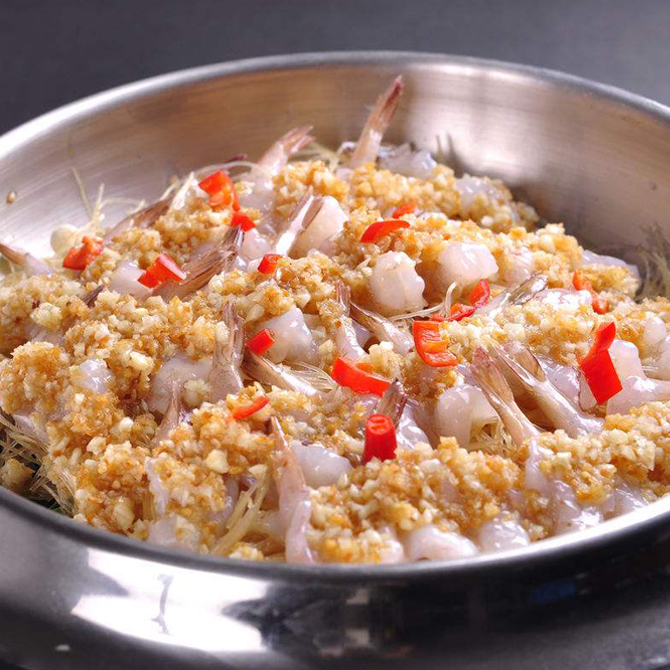配料:蝴蝶蝦、蒜蓉、洋蔥、辣椒、粉絲