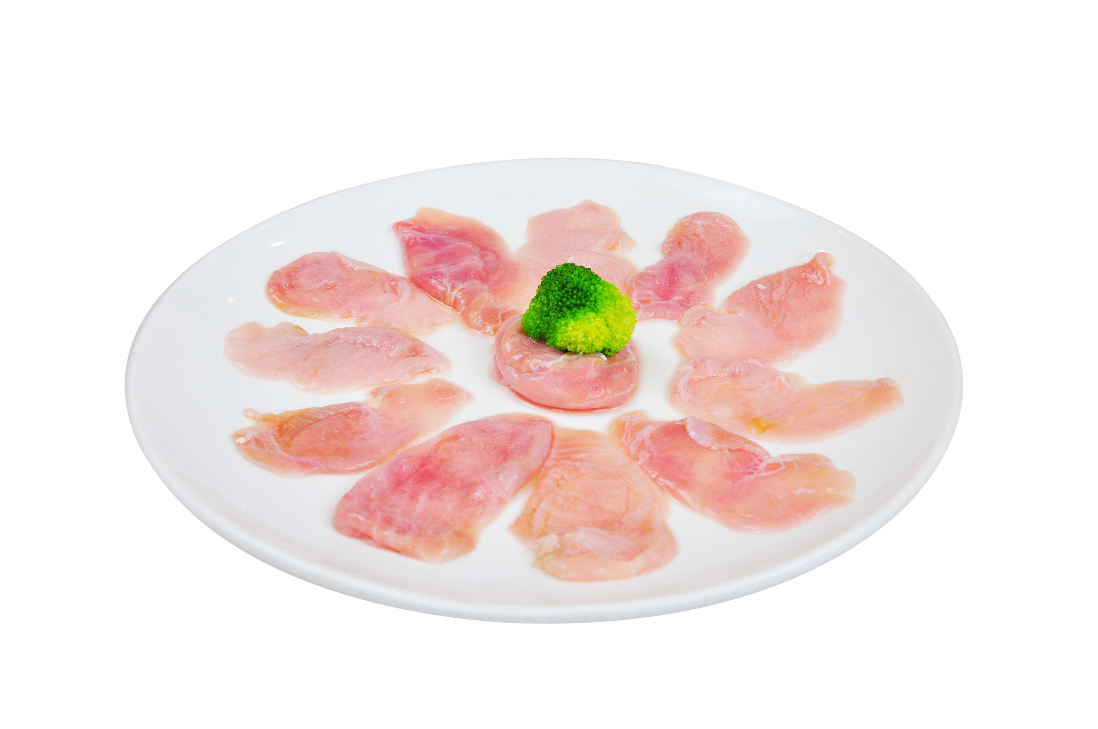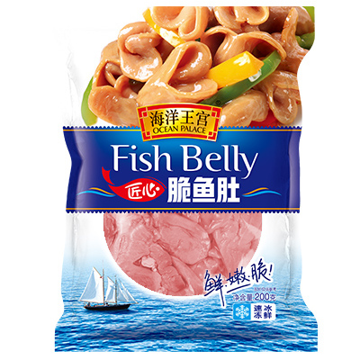 巴沙魚是東南亞江河流域著名的優(yōu)質淡水魚類,其肉質潔白細嫩,汁液鮮甜清美,營養(yǎng)豐富,且不具有間肌魚刺,便于加工食用,長期以來受到各地人們的廣泛喜愛,其中巴沙魚內的魚肚更是一種具有獨特風味的水產珍品。本產品選用純凈河域捕撈的鮮活巴沙魚為原材料,運用專業(yè)冷鏈物流運輸設備,將巴沙魚送到潔凈無菌的生產車間內,由專人精心切出體內魚肚,選取魚肚中鮮脆的部分,反復修剪成薄片,多次清洗并浸泡純凈冰水以改善肉質,為求留下口感最滑膩動人的脆片。魚肚片隨后經專用的流水生產線和平板速凍設備冷凍加工,期間部分肚片由于肉質厚度不足,片狀不均勻而在急速冷凍后卷縮變形的,都被篩選舍棄,最終成品百里挑一。每片魚肚片加工過程都投入大量的人員精力和成本,可謂片片心意滿溢。產品色澤紅潤新鮮,口感爽彈軟嫩,甜滑多汁,肉質清鮮味美,勁脆十足,解凍后烹調各式菜肴皆美味可口。