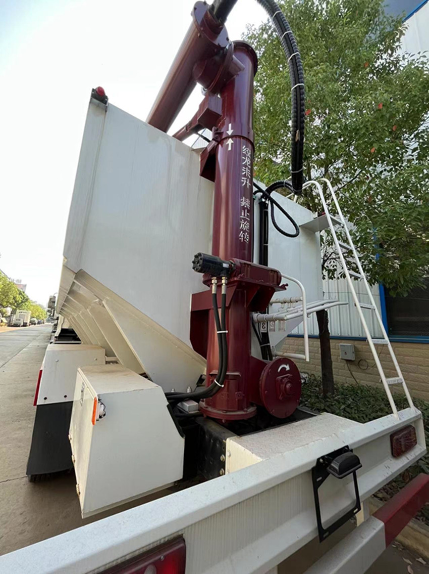 可****各分倉(cāng)卸料順序和速度,整車3條蛟龍(底部水平絞龍、尾部垂直絞龍、頂部卸料絞龍),由取力器經(jīng)車輛變速箱取力后,將動(dòng)力傳動(dòng)**高壓油泵以驅(qū)動(dòng)液壓系統(tǒng)帶動(dòng)各絞龍工作,或者由3個(gè)5.5kw 380v電機(jī)帶動(dòng)各絞龍工作,頂部絞龍液壓**舉升,可左右旋轉(zhuǎn)180°此車公告+環(huán)保+燃油齊全,全國(guó)上戶無憂!
