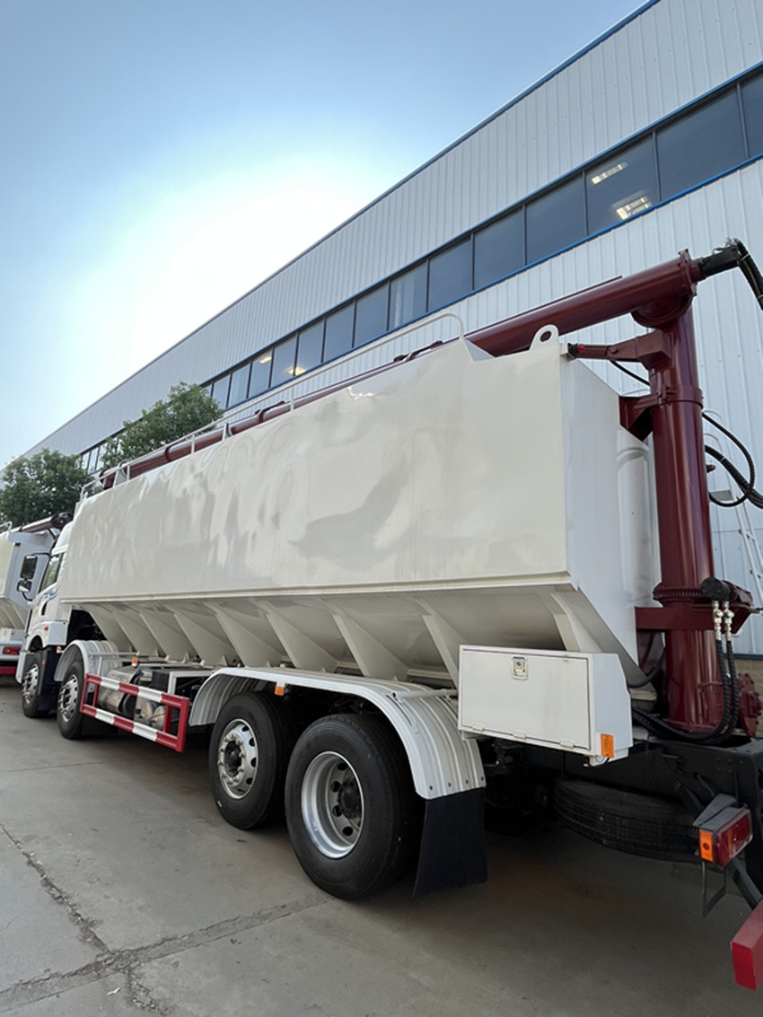 罐體采用4mm碳鋼板制作,罐體內(nèi)分為貳個倉,(可根據(jù)用戶需求做多個分倉)可****各分倉卸料順序和速度,整車3條蛟龍(底部水平絞龍、尾部垂直絞龍、頂部卸料絞龍),由取力器經(jīng)車輛變速箱取力后,將動力傳動**高壓油泵以驅(qū)動液壓系統(tǒng)帶動各絞龍工作,或者由3個5.5kw 380v電機帶動各絞龍工作,頂部絞龍液壓**舉升,可左右旋轉(zhuǎn)180°此車公告+環(huán)保+燃油齊全,全國上戶無憂!
